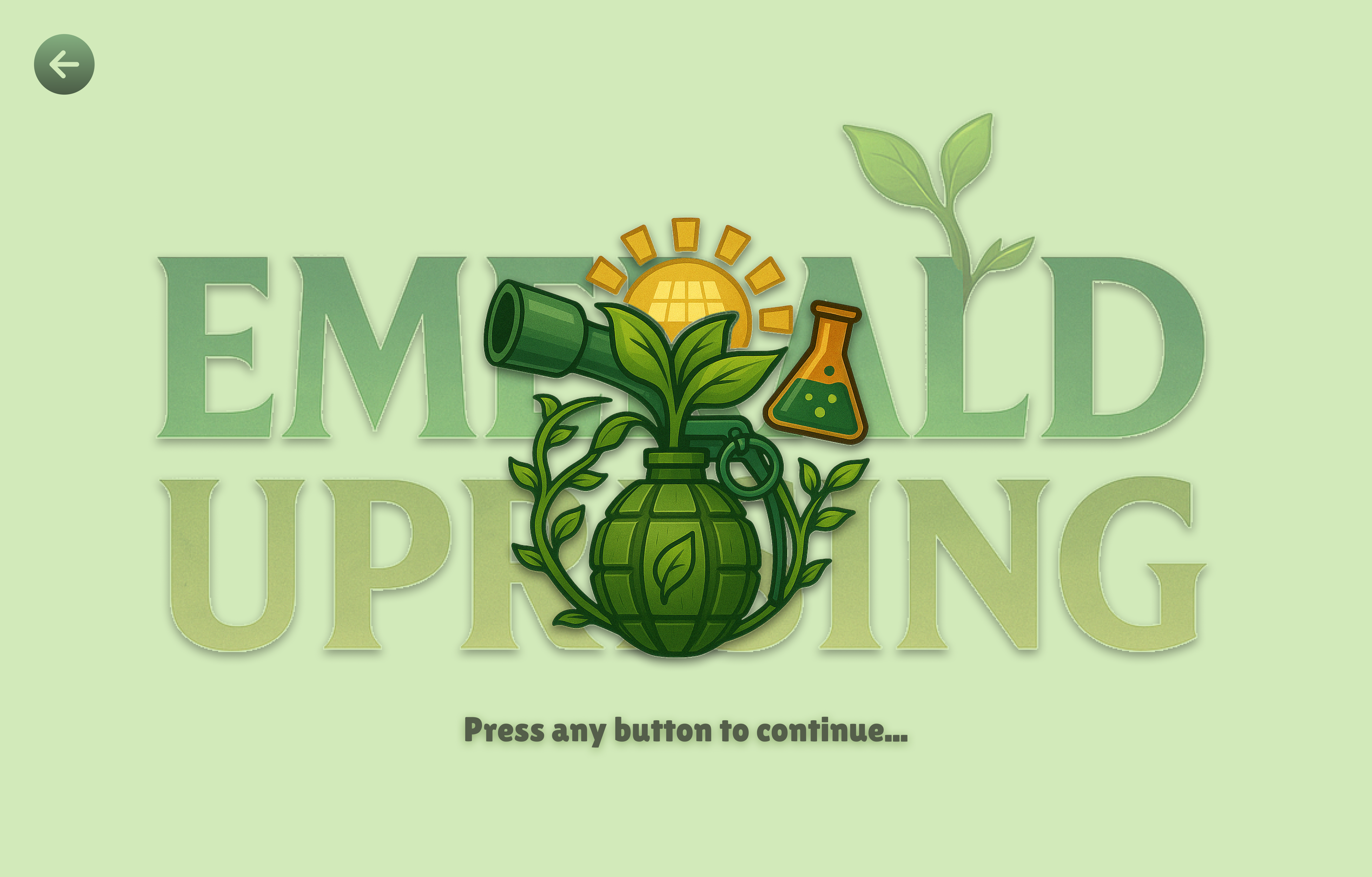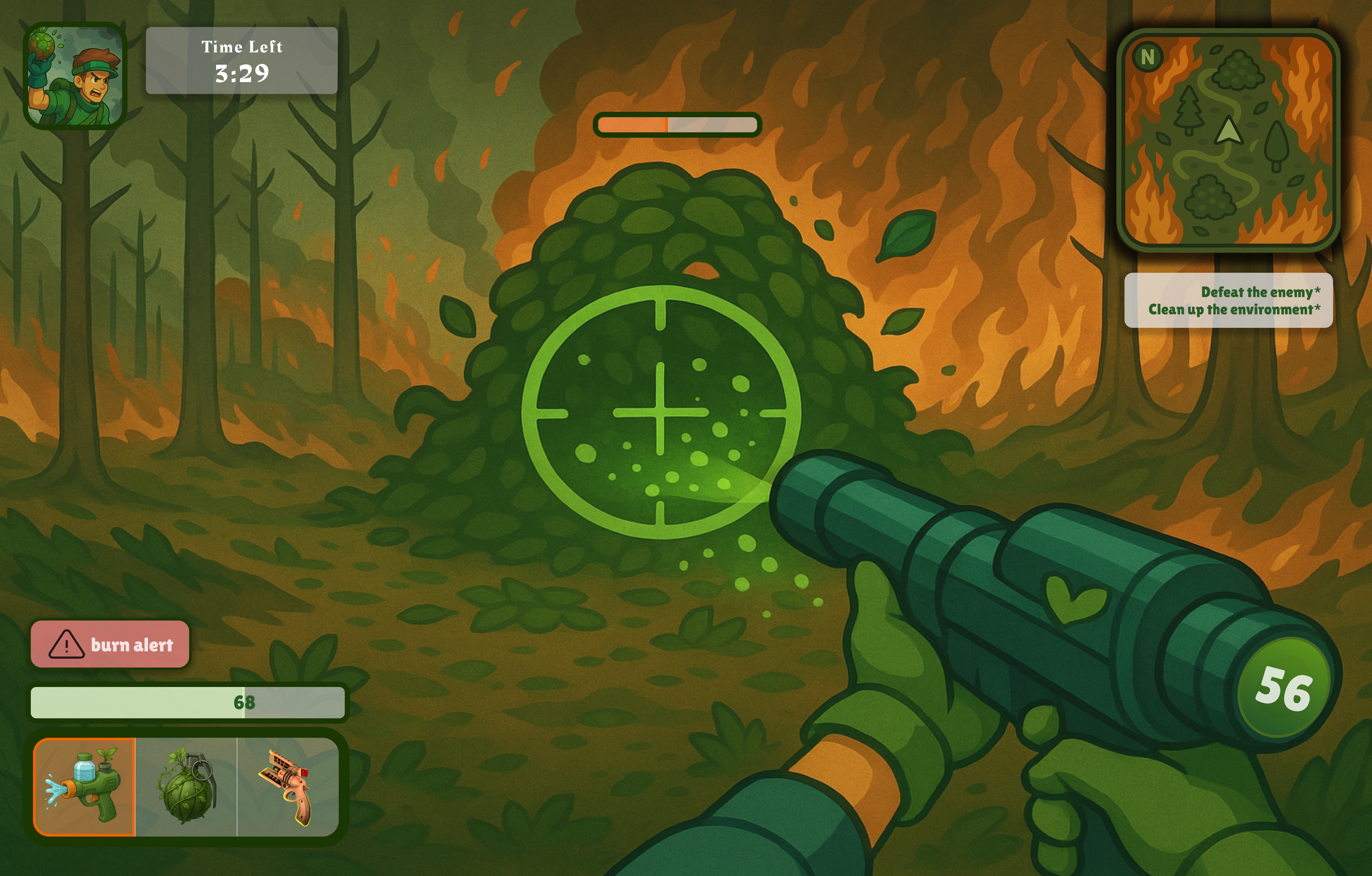 Emerald Uprising is a co-op FPS where you and your squad become Eco Warriors, fighting enemies not with bullets, but with nature. Set in a world choking on environmental collapse, you'll take on missions across diverse biomes — from polluted cities to oil-slicked oceans to forest wildfires.